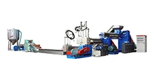Direct pelletizing of washed flakes with precise IV control, producing food-contact grade pellets ready for bottle-to-bottle recycling.